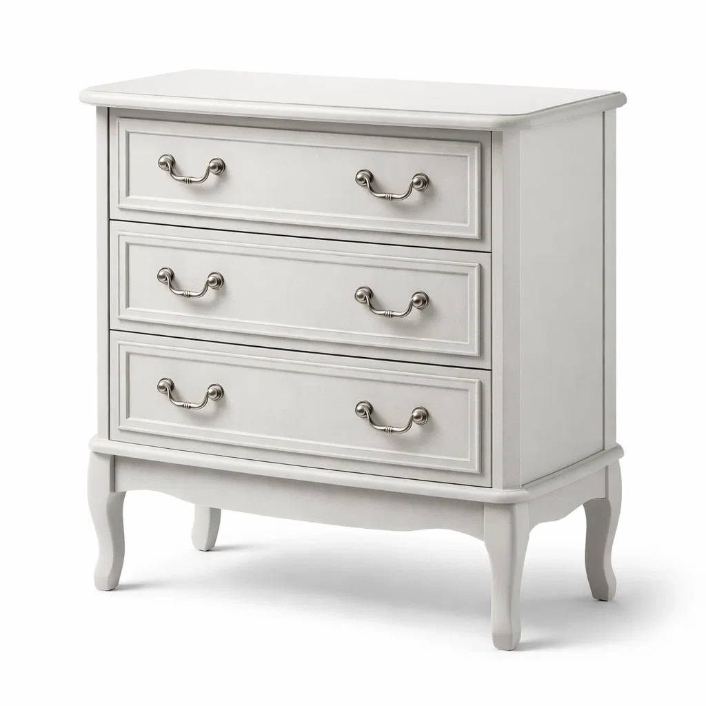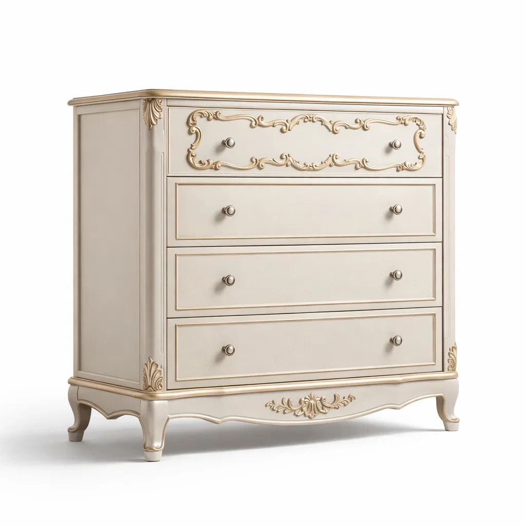 Commode en bois ivoire avec 4 tiroirs et ornements sculptés