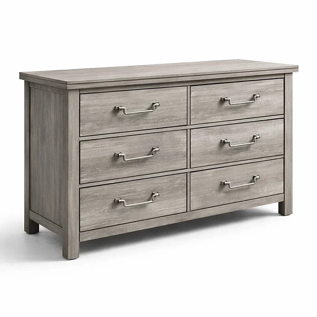 Commode en bois composite gris avec 6 tiroirs et poignées métalliques