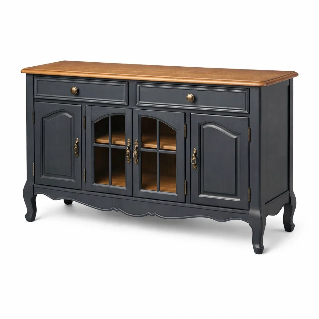 Matériau : Corps en bois massif, dessus en chêne, portes en verre trempé de 4 mm d'épaisseur